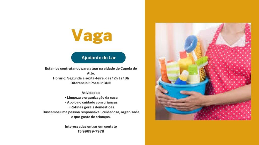 O capeladoalto.com atua apenas como canal de divulgação e não possui vínculo com os empregadores, tampouco participa dos processos seletivos.