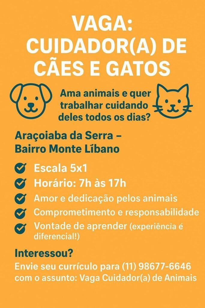 Cuidador(a) de cães e gatos (Araçoiaba)