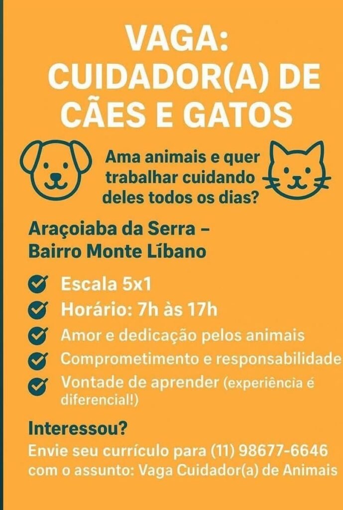 Cuidador(a) de cães e gatos (Araçoiaba)