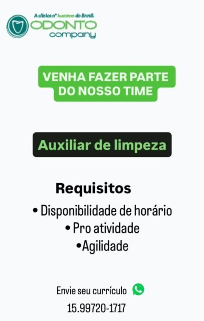 ODONTO Company – Auxiliar de limpeza (Capela)