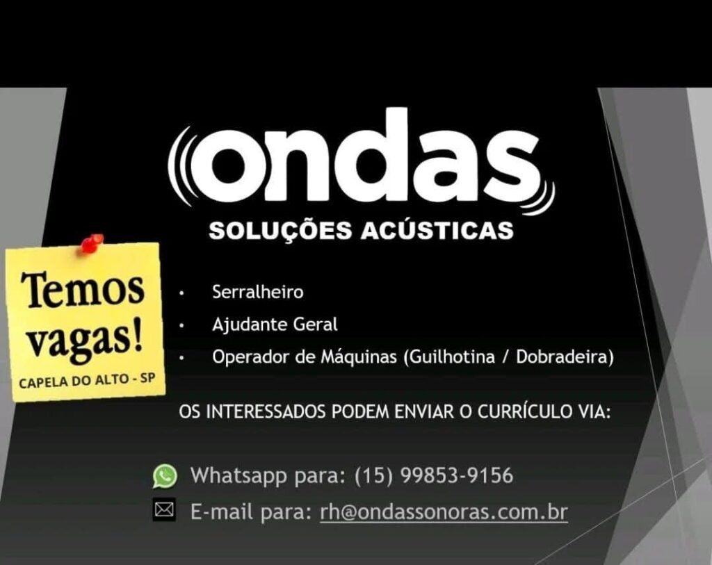 📨 Interessados devem enviar currículo para: rh@ondassonoras.com.br