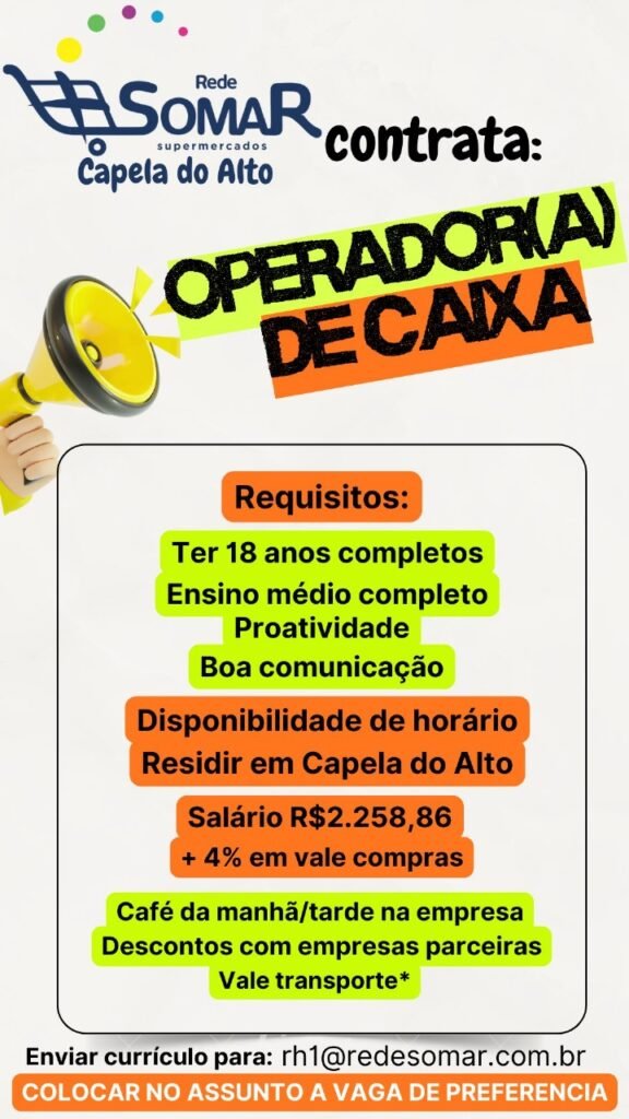 O capeladoalto.com atua apenas como canal de divulgação e não possui vínculo com os empregadores, tampouco participa dos processos seletivos.