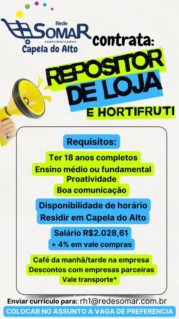 Rede Somar – Repositor de Loja & Hortifruti (Capela)