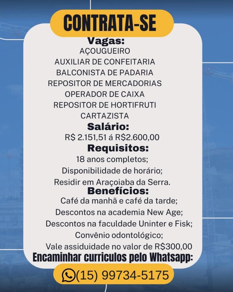 A Rede Somar Araçoiaba está com vagas em aberto!