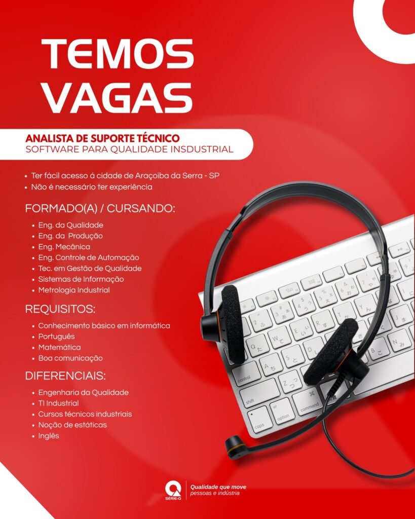 Oportunidades para Analista de Suporte Técnico em Araçoiaba da Serra – SP. Ser formado ou estar cursando ensino superior.