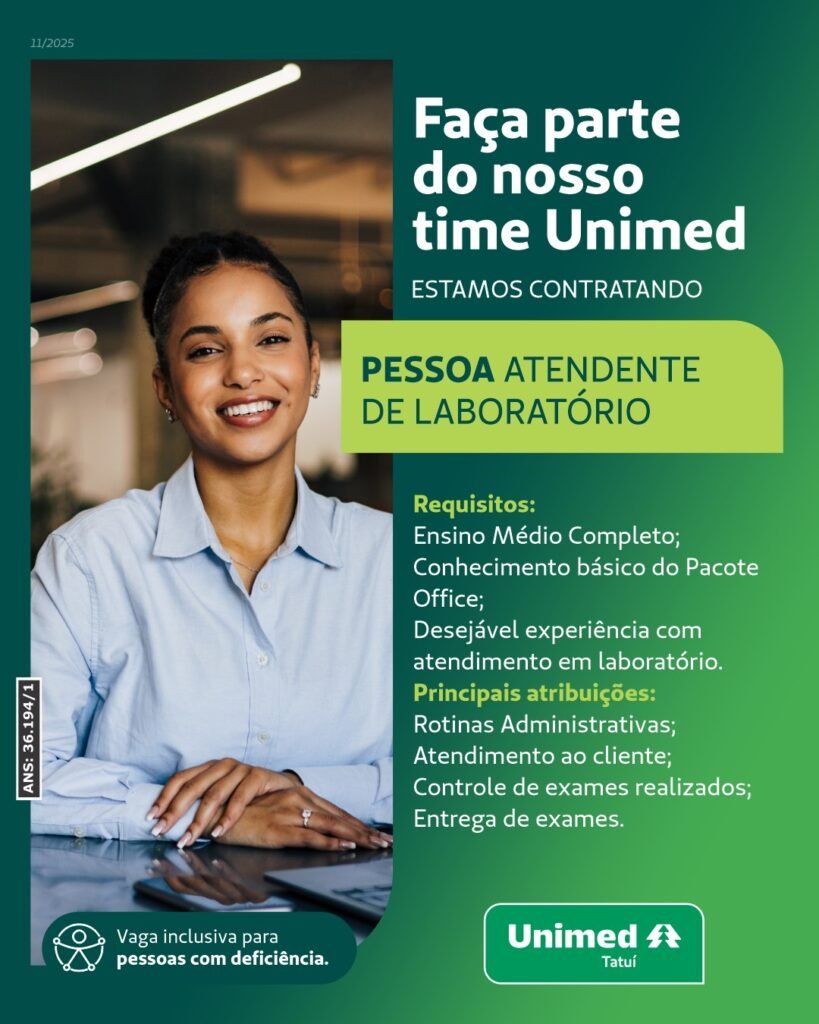 A Unimed Tatuí está contratando.