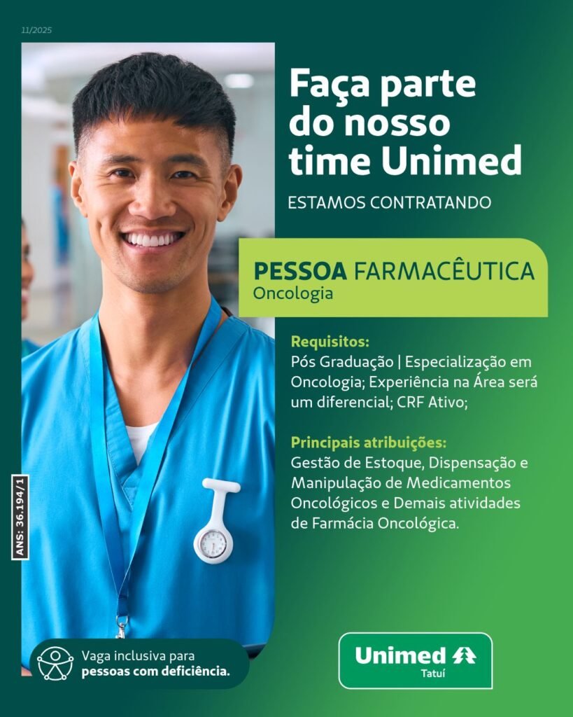 A Unimed Tatuí realiza seu processo seletivo com base nas competências exigidas pelo cargo, promovendo oportunidade igual a todos, valorizando assim, o talento individual de cada candidato. Apoiamos a diversidade, inclusão e a interação entre as pessoas, independente de: cor, gênero, religião, nacionalidade, orientação sexual, origem social, preferências políticas, para alcançar os resultados esperados.
