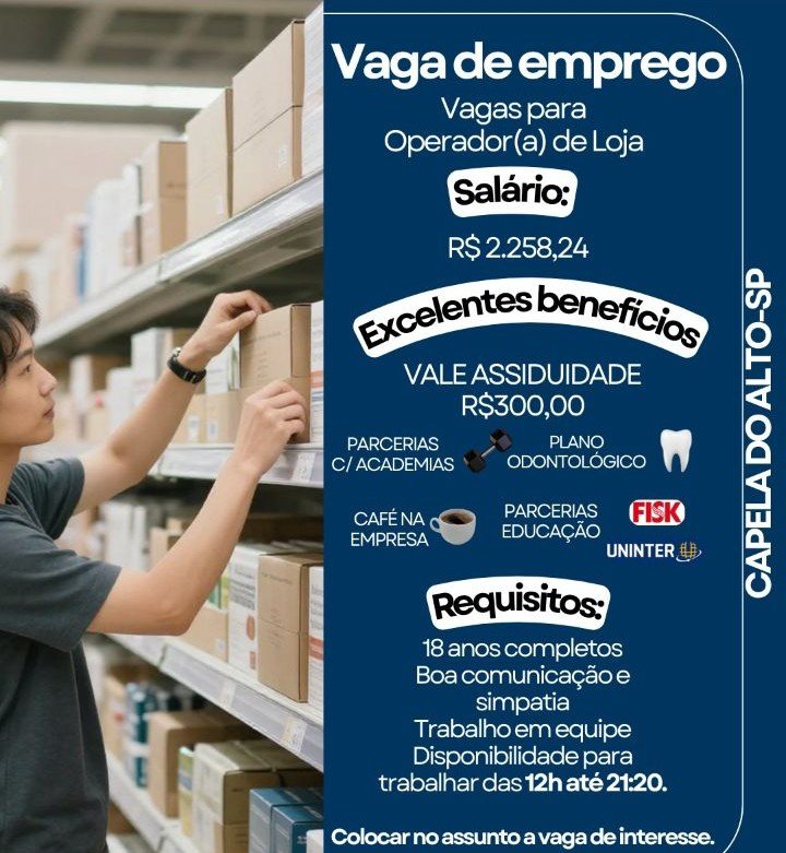 Envie seu curricolo: rh1@redesomar.com.br com o assunto “Operador(a) de Loja”