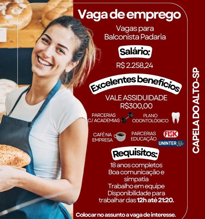 Envie seu curricolo: rh1@redesomar.com.br com o assunto “Balconista Padaria”