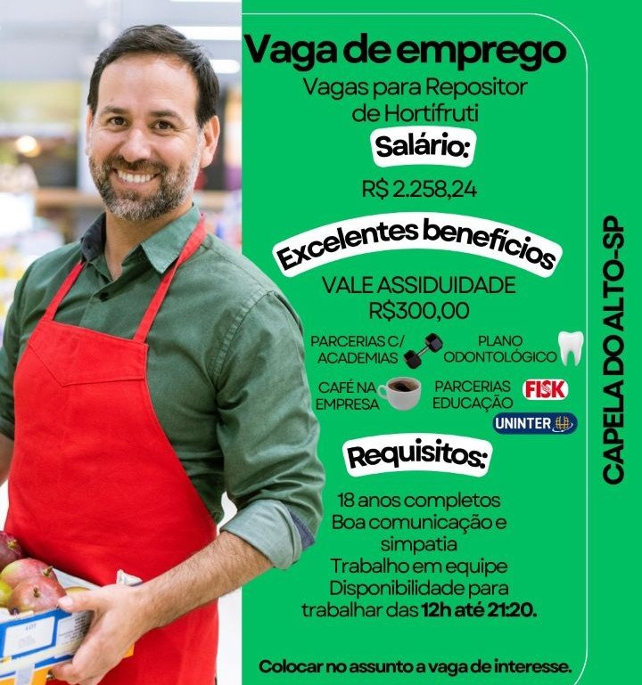 Envie seu curricolo: rh1@redesomar.com.br com o assunto “Repositor de Hortífruti”